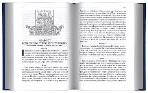 Акафістник можна називати збірником церковних піснеспівів – акафістів, які увійшли туди, формувалися на протязі століть і утворили цілу систему. Сучасний Акафістник має вигляд книги в твердій палітурці і розділений на три томи або ж може існувати єдиним зібранням пісенних текстів, включаючи прославлення «радуйся», та в кінці кондака закінчується алилуарієм.