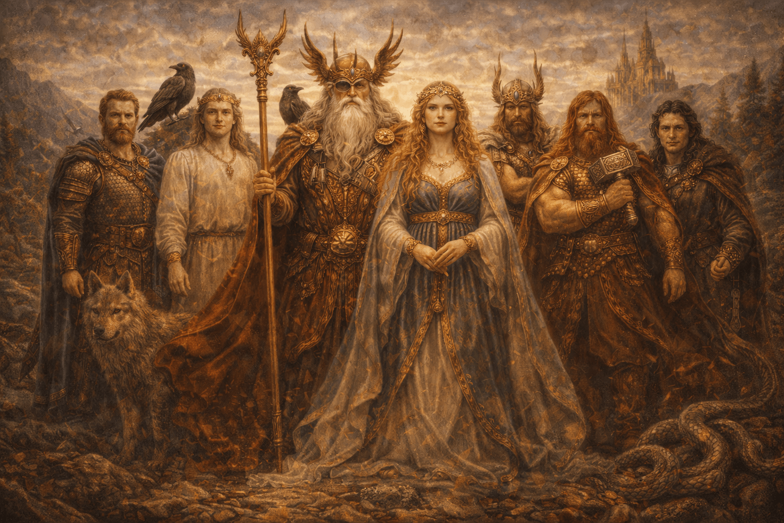 Одним із найпопулярніших богів скандинавського пантеону був Тор, син Одіна. Його ім’я буквально означає «грім», а сам він виступає богом грози, сили та захисту людей. Тор відомий своїм магічним молотом Мйольніром, за допомогою якого він знищує велетнів — ворогів богів і людей. У народних віруваннях скандинавів Тор був особливо близьким до простих людей, адже він захищав світ від хаосу та чудовиськ.