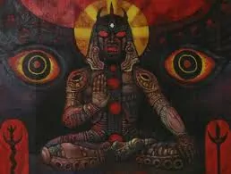 В священных текстах свой страшный вид явил Кришна. Его верный ученик Арджун был очень поражен. Он увидел не только милосердный вид, а гнев и ужас. Дальше Арджун сказал вернуть облик обратно и больше не показывать. Образ почитается в Индии Непале и на Тибете.