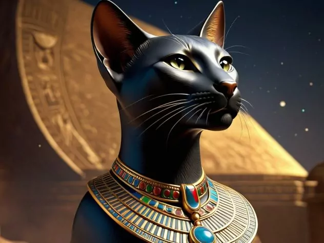 Домашні кішки набули особливого значення в Єгипті, а Бастет, як їх покровителька, отримала нові символи. Тепер її зображували у вигляді сидячої кішки з королівським виглядом, часто з кільцями у вухах чи носі, що символізувало її високе положення серед богів. У цьому новому образі вона стала менш агресивною, але зберегла свою здатність до захисту та силу, що випромінювалася лагідністю.