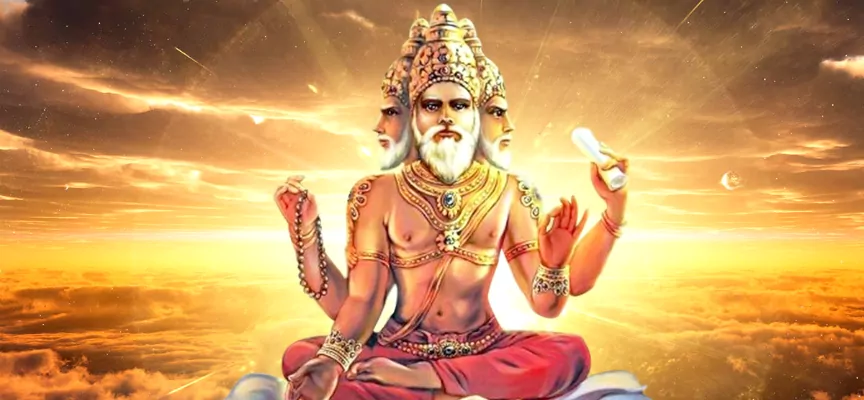 Індуїстська трійця це людина з трьома особами. У самому центрі знаходиться Брахма. Його зображують з червоним кольором шкіри і в червоному одязі. Він має чотири голови і чотири руки. Частина Брахми постає з білою довгою бородою, вона символізує нескінченність буття бога, а також його вічну мудрість. За легендою кожна з чотирьох голів безперервно віщає одну з чотирьох Вед. У Брахми чотири руки теж існують не просто так, кожна уособлює одну з чотирьох сторін світу. Причому задні руки відповідають за розум, а передні за людське его і самовпевненість. Руки Брахми завжди зайняті.