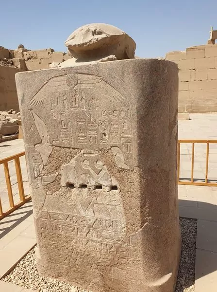 Другий обряд ми виконали у храмі Карнаку. У храмі є сім символічних брам. Вони вибиті у стіні храму. Це брами до Осіріса. Ті, хто бере участь у ритуалі, повинні заздалегідь купити запечатану пляшку з водою. Пляшка ставиться біля брам і над нею читається молитва. Молитва складається зі звернення до Божества («Визволи мене від заздрості, і від зла, і від чаклунства, і т.д.»). До цього обряду іноді вдаються і мусульмани, але так, як їм не можна звертатися до Осіріса, або читати давньоєгипетські молитви, вони читають 113 суру Корану «Світанок» (1. Скажи: «Вдаюсь до захисту Господа світанку 2. Від зла того, що Він сотворив, 3. Від зла мороку, що він наступає, 4. Від зла чаклунів, що дмуть на вузли, 5. Від зла заздрісника, що він заздрить «). Потім пляшку беруть до рук і проходять до наступної кімнати. Тут пляшку відчиняють, роблять кілька ковтків і знову закривають. А далі проходять до третьої кімнати. Пляшку ставлять на підлогу, а руками торкаються на стіні зображень хрестів Анкх. Так стоять щонайменше хвилини. Потім піднімають пляшку з підлоги та бачать, що вода у пляшці змінює колір! Але – розмовляти не можна. У повному мовчанні з пляшкою йдуть до священного озера (басейну) фараонів (де фараон розмовляв із Богами), виливають вміст у басейн. Тут ще одне диво — при виливанні струменя води можуть знову забарвитися в якесь світло або відтінок. Потім залишають пляшку в призначеному для цього місці і обходять сім разів проти годинникової стрілки стелу з фігурою Хепрі Ненародженого.
