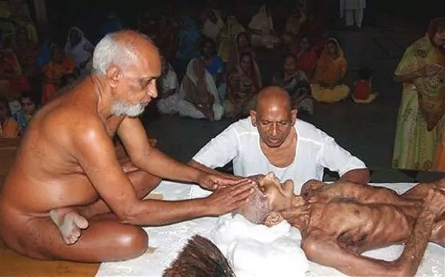 Впрочем, это ещё не самое большое испытание. Достичь «спасения» можно разными путями, и наиболее прямой и быстрый – добровольное самоумерщвление. Достигается оно с помощью голодания. В наше время примеры таких «подвигов» редки, однако нельзя сказать, что их нет: в 1987 году таким способом покинул мир Бадри Прасад Махарадж – тогдашний глава дигамбаров.