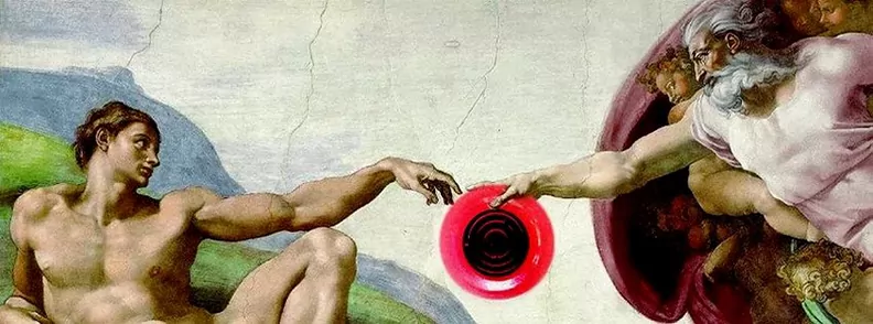 [Фрісбі-версія фрески «Створення Адама» Мікеланджело Буонарроті]