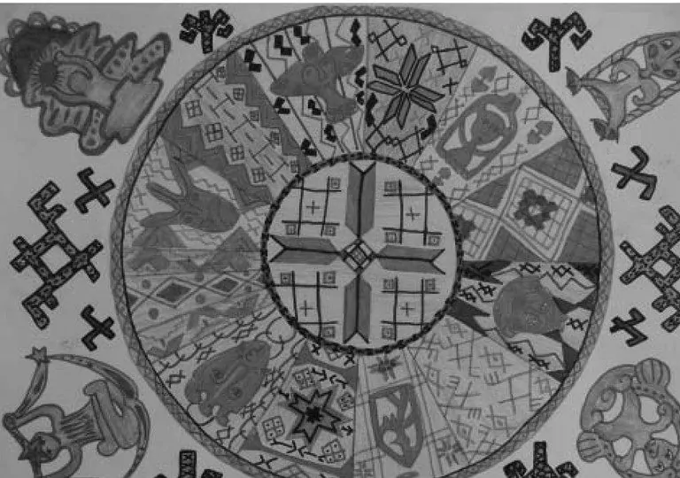 Для финно-угорских племен важную роль занимали лесные рощи, они считали деревья священными, украшали их и почитали. Древо охраняет мифическая птица, похожая на орла, что и дало ему второе название «орлиное». На верхнем ярусе располагался верхний мир, с Богом создателем и божественными владыками стихий. На среднем – мир людей, рядом с которыми живили боги ремесленники и младшие боги. На нижнем – злой брат единого Бога, правящий преисподней, вместе с демонами и духами зла.