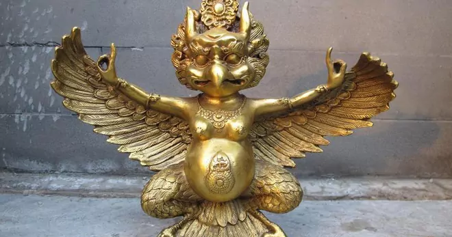 Не маючи терпіння чекати Віната розбила одне яйце, і перше немовля, недорозвинений виродок, прокляв її на довге рабство, поки другий син не звільнить мати. У визначений термін з другого яйця з’явилася чудова вогненна птиця. Сяйво і міць новонародженого Гаруди підкорили навіть богів, які назвали його найбільшим, повелителем птахів.