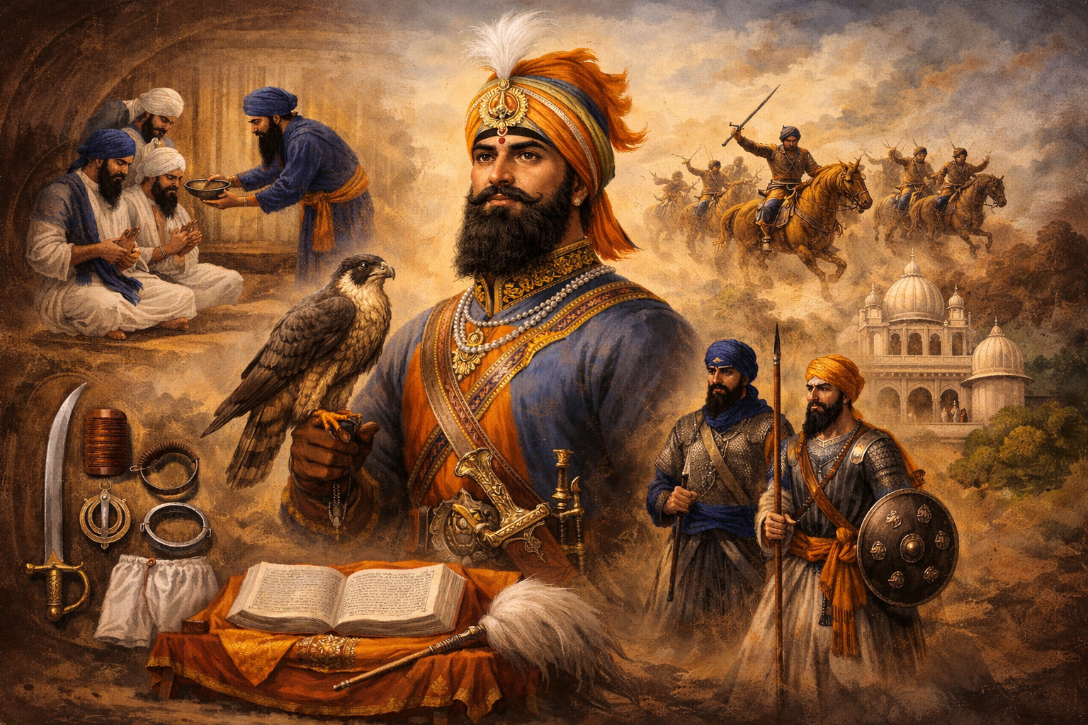 В 1699 году в Анандпур-Сахибе Гуру Гобинд Сингх объявил о создании Хальсы — братства посвящённых сикхов. Этот акт стал поворотным моментом в истории религии. Посвящение (Амрит Санчар) предполагало сознательный выбор пути дисциплины, равенства и служения.