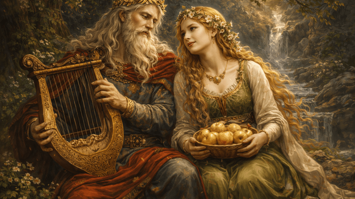 Ідунн була дружиною бога поезії Брагі — мудрого та красномовного покровителя скальдів. Її ім’я часто тлумачать як «та, що омолоджує» або «та, що відновлює». Це значення безпосередньо пов’язане з її головною функцією у світі богів. Згідно з ранньою скальдичною поемою приблизно IX–X століття, саме Ідунн було довірено зберігати чарівні яблука, які підтримували молодість і силу богів. Час від часу боги мусили куштувати ці плоди, щоб зберігати свою життєву енергію та уникати старіння. Таким чином, яблука Ідунн були своєрідним джерелом божественної життєвої сили.