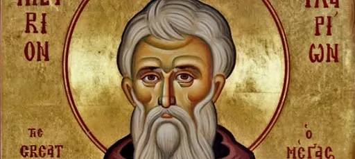 Майбутній аскет прийняв Христа і Святе Хрещення, уважно вислуховуючи слова на Божестенній літургії. Прививаючи себе до добрих звичаїв, у серці запалала любов до Бога. Він багато чув про добродійне життя подвижника Антонія Великого в Єгипті. З наміром серця відправляється до Антонія Великого. У пустельному місці знаходить преподобного і бачить обличчя, яке випромінює божественне світло, уважно слухає євангельську проповідь, якою вказується шлях досконалості.