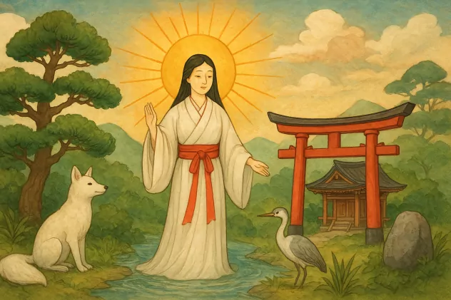 У синтоїзмі природа розглядається як одухотворена, і кожен її елемент може бути носієм божественного начала. Гори, ріки, дерева, каміння, блискавка, вітер чи море усе це потенційні осередки присутності камі. Одним із центральних божеств є богиня сонця Аматерасу Омікамі, шанована як прародителька імператорського роду та джерело світла для всього живого. Поряд із нею згадуються численні інші духи-творці, які формували світ і підтримують його рівновагу.