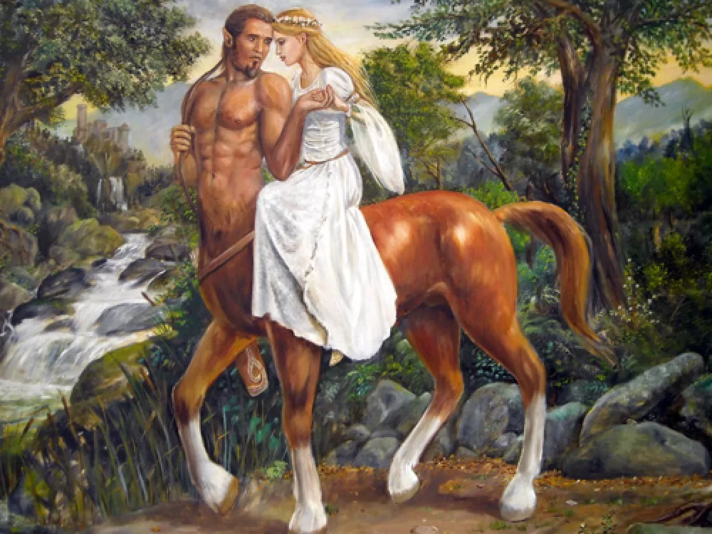 Легенды о происхождении кентавров гласят, что они являются потомками Иксиона и Нефелы. Также некоторые полагают, что их отцом мог быть Аполон, а метерью-нимфа Стильба. Самой популярной версией считается, что эти существа произошли от самого мудрого представителя племени-кентавра Хирона, родителями которого были Кронос и Филира. Морская дева и титан тайно поженились, так как Кронос уже был женат, но богиня Рея застала их на ложе в момент страсти. Испугавшись, бог превратился в коня, а позже у него родился сын, похожий на получеловека-полулошадь. Благодаря божественному происхождению Хирон обладал бессмертием, и в отличие от своих сородичей был добрым, любил изучать медицину и искусство, а сам Геракл, Ахиллес и Асклепий были его учениками.