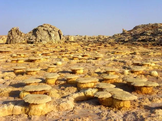 Пустеля Данакіль — це одне з найбільших чудес світу. Єдиний у світі доступний асфальтний вулкан. Він створює в ночі стільки фарб і відтінків, що зафіксувати всі з них не може жодна фото або відео камера. Побачити всі кольори та відтінки здатне лише людське око. Із землі ростуть помаранчеві кам’яні гриби. Зелені озера із сірчаної кислоти сусідять із синіми озерами із найчистішої солоної води. Червоні та зелені камені.