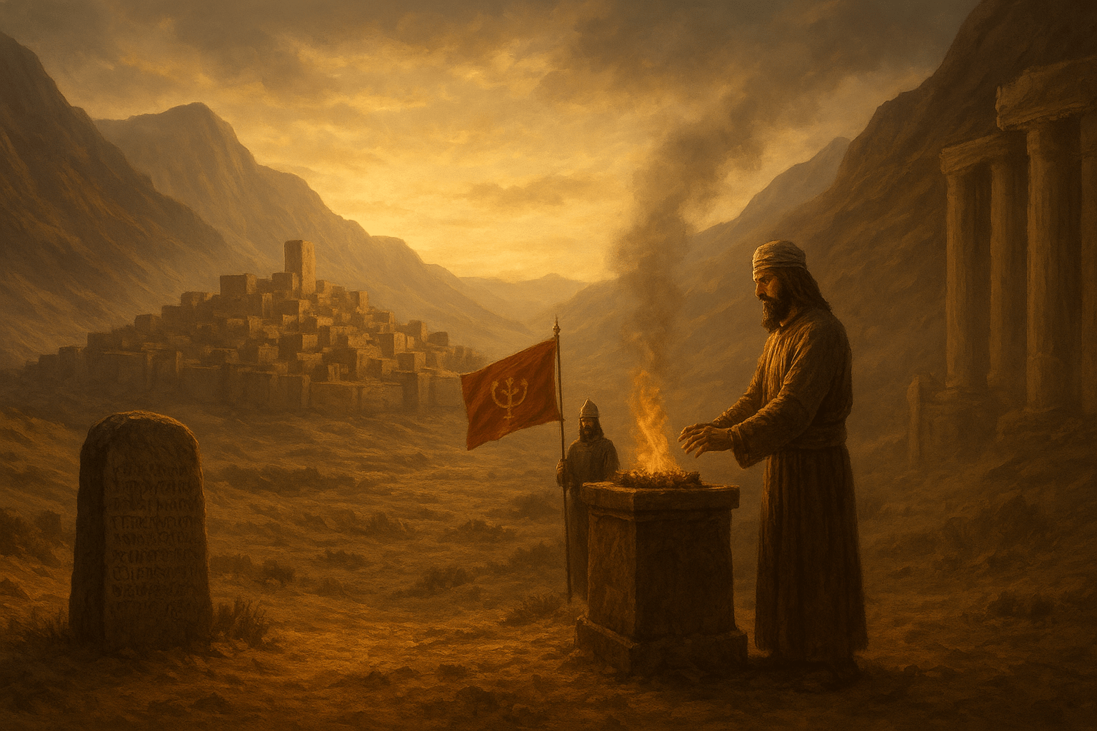 У своєму написі цар Меша розповідає про панування ізраїльського царя Омрі (близько 884–872 рр. до н. е.), який відвоював частину моавітських земель після смерті Соломона, коли єврейське царство розпалося на Ізраїль і Юдею. Меша приписує це лихо гніву божества Кемоша, але водночас описує власне успішне повстання проти Ізраїлю, яке, найімовірніше, сталося за правління сина Омрі — Ахава. Напис не лише підтверджує біблійні відомості, а й надає рідкісну можливість побачити події очима моавітянського правителя.