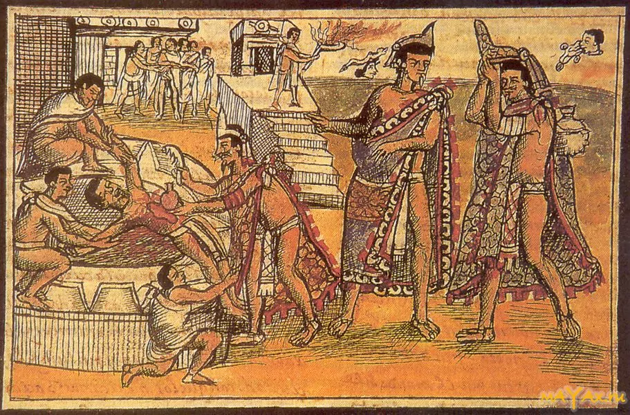 Высшей формой подношения считалась человеческая жизнь. Часто в умерщвлении участвовало несколько священников, а после бездыханно тело сбрасывалось вниз тому, кто принес его в жертву. Из останков умершего готовили пищу, которую предлагали родственникам и друзьям. Ацтеки считали, что, в награду, люди, пожертвовавшие своей жизнью во имя богов, а также умершие при родах женщины и храбрейшие войны отправляются не в подземное царство, а в небесную обитель бога солнца.
