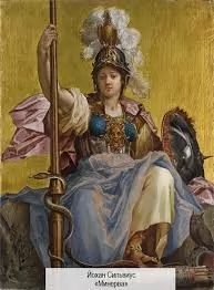 В иконографии эпохи Возрождения Минерва символизирует созерцательную жизнь, благоразумие, мудрость и, следовательно, является мифографическим эквивалентом искусства и науки. Так много качеств, которые были приписаны ей. Богиня мудрости, науки, медицины, искусства и всякой деятельности, связанной с интеллектом; она могла спасать героев, защищать детей, и даже бросать молнии. Согласно мифологии она ела амброзию и нектар.