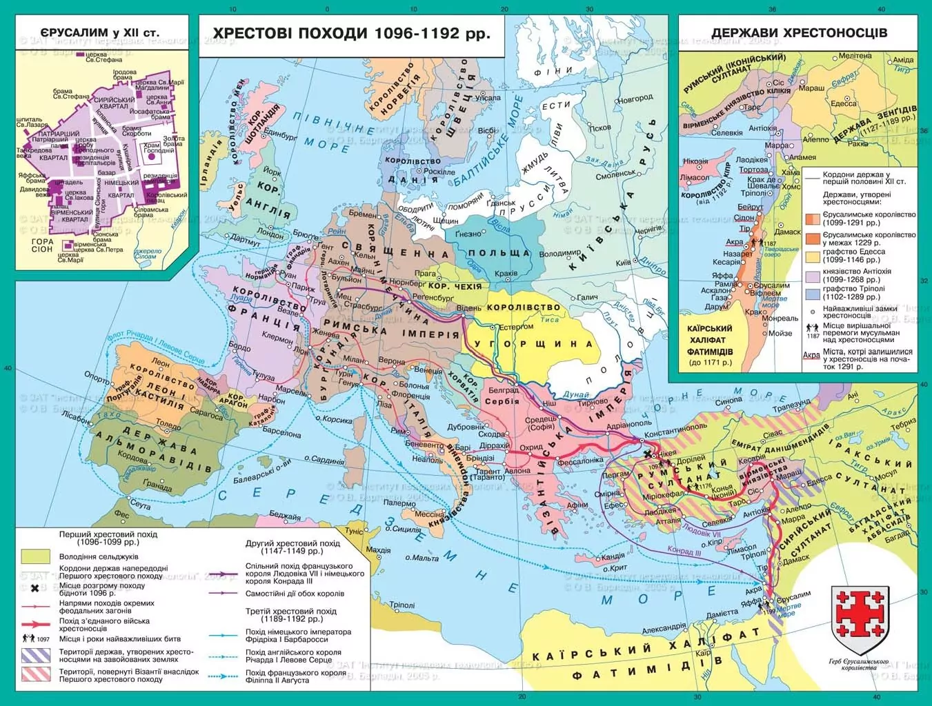 В результаті першого походу Єрусалим був захоплений, і було створено Єрусалимське королівство, крім нього були утворені ще три християнські держави і кілька лицарських орденів.