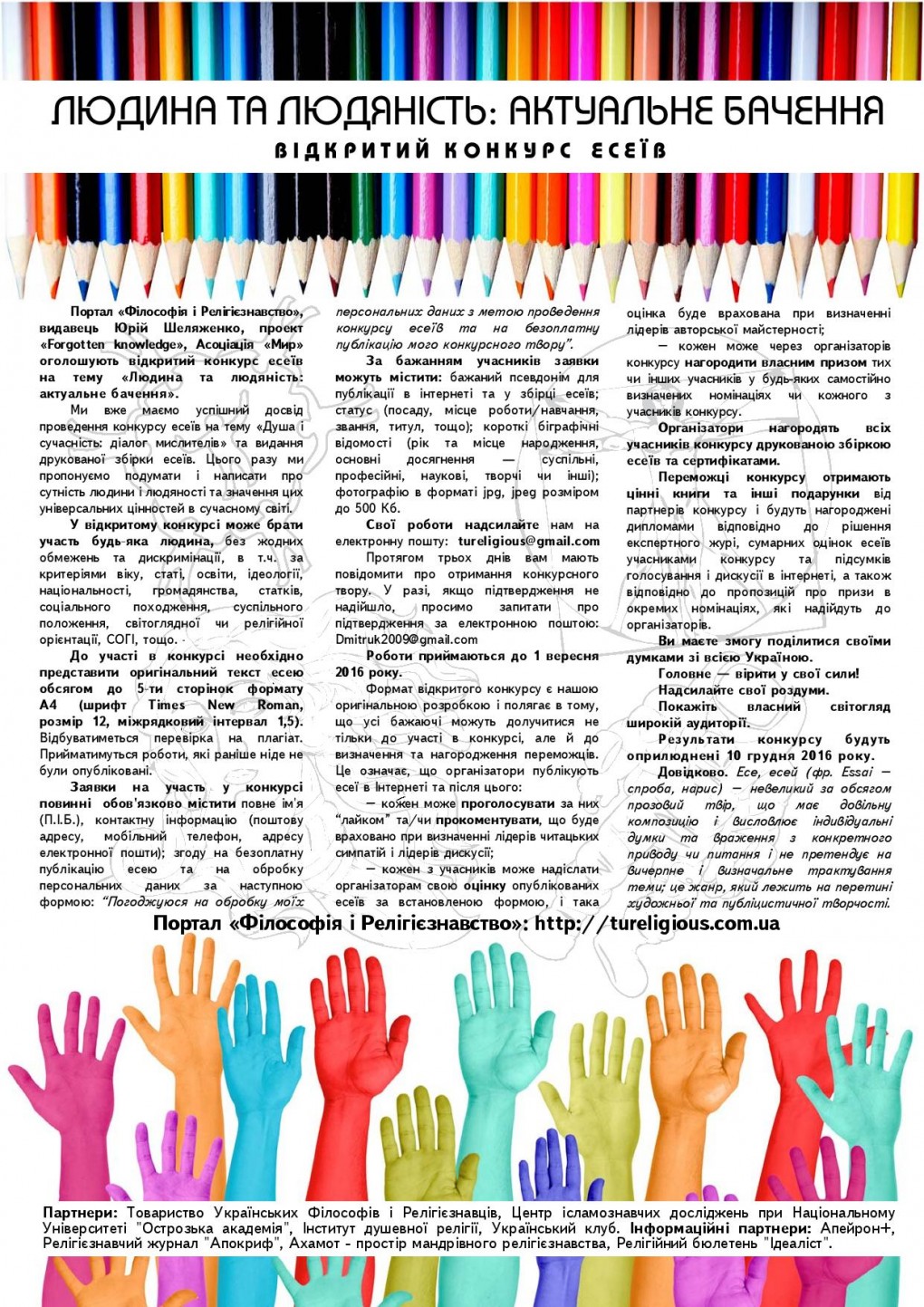 Шановні учасники конкурсу есеїв «Людина та людяність»!