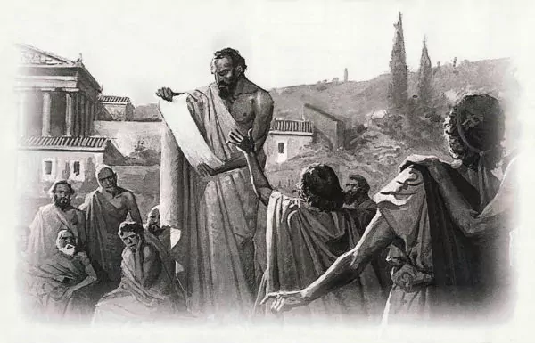 Пізніше риторика була приведена Сократом до належного стану. Головним завданням риторики Сократа постає — пошук істини та набуття добродійності. На думку філософа співбесідник повинен пізнати самого себе. Тим самим Сократ привчав інших до глибокодумності та моральності. Платон з Ксенофонтом передали деякі висловлювання свого вчителя Сократа, які прийнято вважати моральними законами: не бажання спричинення зла іншому, проявлення добродійства людиною.
