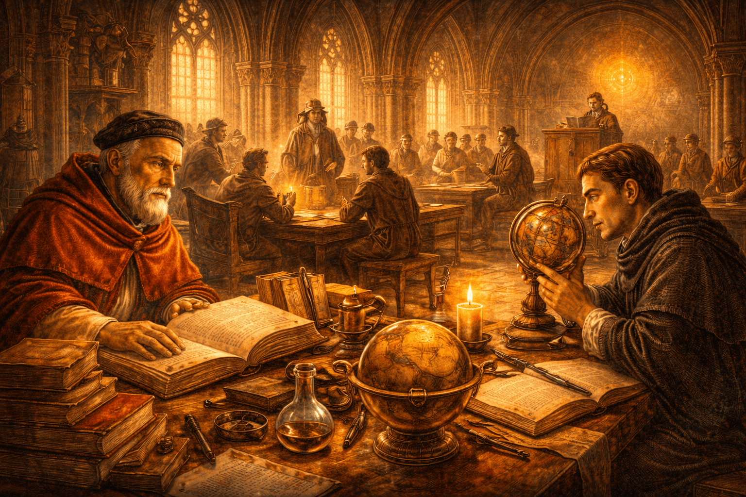 Середньовічна філософія і наука заклали фундамент для інтелектуального прориву Нового часу. Університети, логічні методи та системне мислення стали передумовами наукової революції.