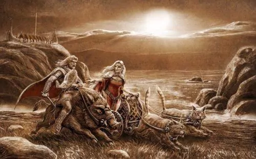 У скандинавів не було можливості займатися сільським господарством. Суворий клімат півночі визначив єдине джерело доходу — військові походи. Багато значення надавалося битвам і смерті — про це свідчить міф про існування Вальгалли, куди потрапляли полеглі в боях. Тому історії вікінгів часто звернені до тем битв, воєн і мореплавання. Їх Боги прихильні до сильних і хоробрих.