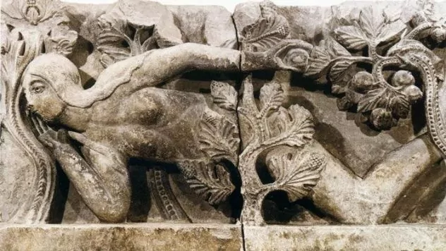 Це зображення робить Гіслеберта піонером у зображенні оголених Адама та Єви, ставши традицією християнського мистецтва, оскільки їхня нагота була пов’язана з їхнім гріхопадінням. Спочатку Єва була у парі з оголеним Адамом, що лежав ліворуч від неї, і обидві фігури були розміщені на перемичці над порталом. Над перемичкою майстер також створив тимпан, який зображував Страшний суд із Христом на престолі, що стояв над врятованими та проклятими, а також супроводжуючими ангелами та дияволами. Глядачі, які переважно були неписьменними, зрозуміли б дидактичну візуалізацію, яка поєднувала Спокусу, через яку гріх увійшов у світ, і сцену остаточного спокутування.