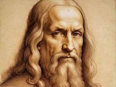 Автопортрет Леонардо да Вінчі, виконаний червоною крейдою між 1512 і 1515 роками, є одним із ...