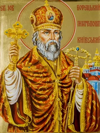 У цьому ж місті в Михайлівському Золотоверхому монастирі 1619 року приймає постриг з чернечим ім’ям Йов, а його дружина стає ігуменею монастиря святого апостола і євангеліста Івана Богослова (поруч з Михайлівським Золотоверхим). З жовтня 1620 року – Йов обирається на київську митрополичу кафедру. Веде активну боротьбу разом з військом Запорізької Січі та наполягає на тому, щоб єрусалимський патріарх Теофан ІІІ повернув легальні права устрою ієрархії української церкви.